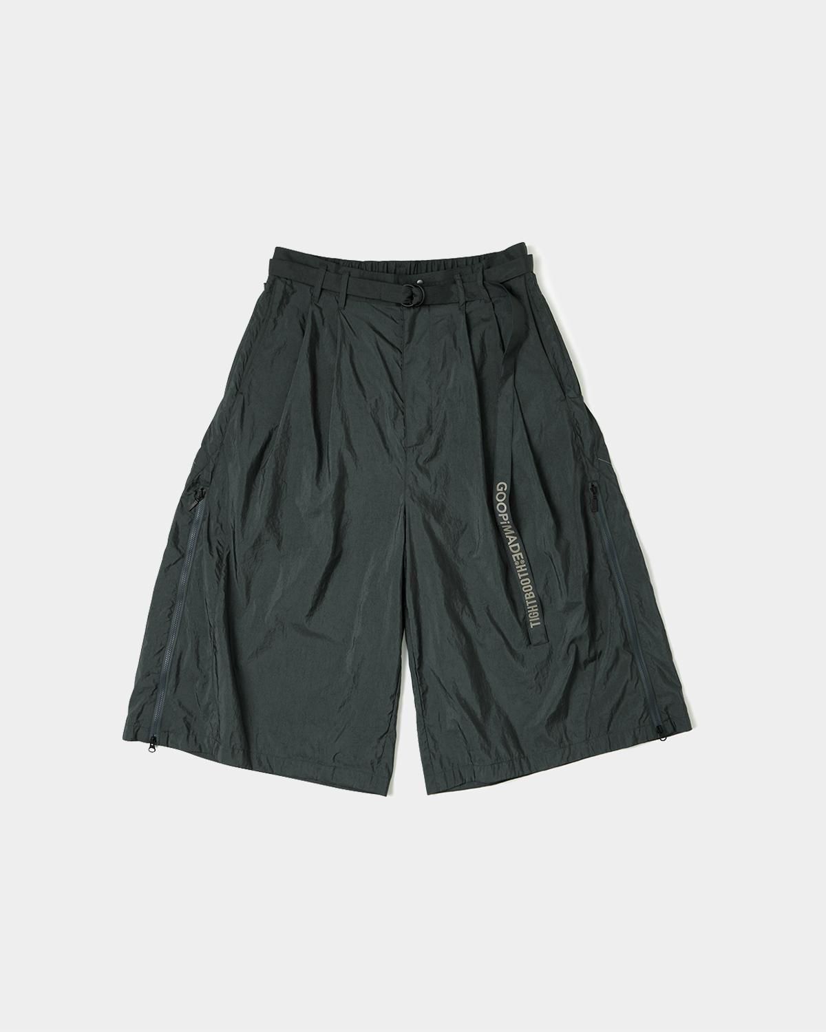 GOOPi MADE®とのコラボレーションアイテム。 軽量な機能素材で刷新された 7/10 レングス仕様。 ブランドコラボレーションを示すロゴ入りのエラスティックバンドシステムを搭載。 両サイドのジッパーにより、さらにワイドなシルエットと通気性を実現。 初登場となる七分丈の設定はビジュアルとスタイルの両面で強烈な反逆精神を表現。 ドローコードの先端にはマグネットディテールを採用し、固定することで揺れを防止。