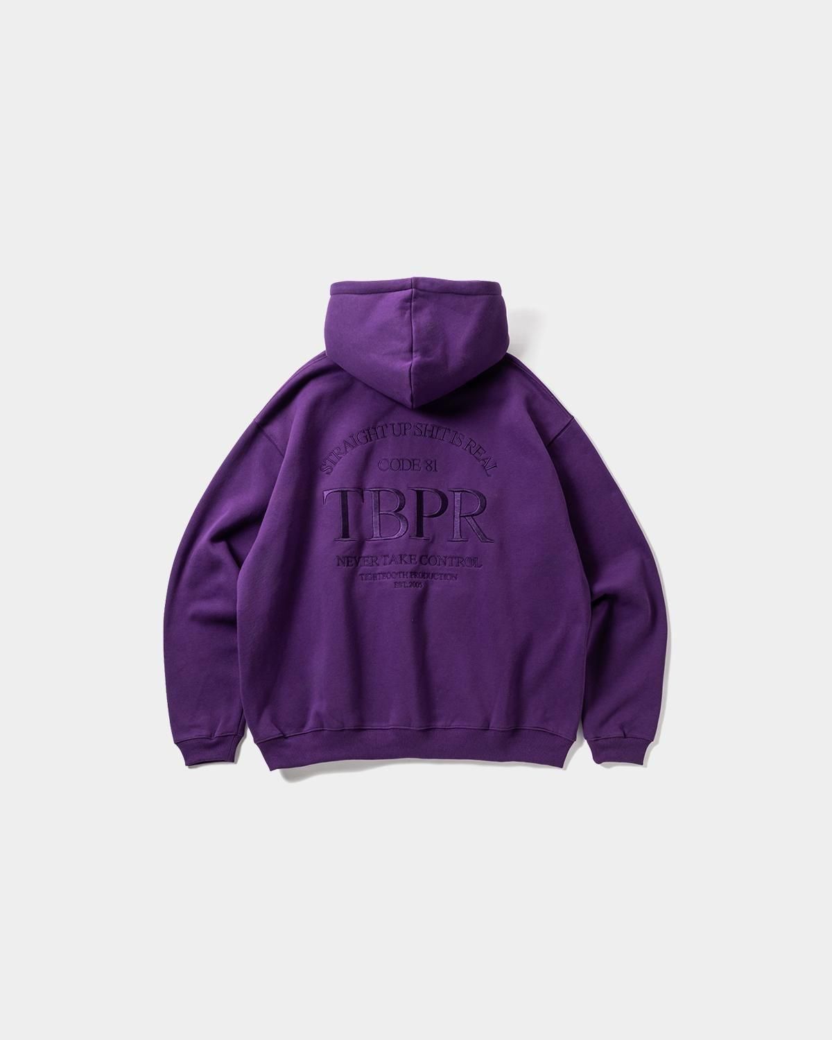 アイコンであるSTRAIGHT UPロゴグラフィックを大きくバックプリントしたスウェットフーディ。 10.5ozの裏起毛生地で身頃はゆったりとしたワイドシルエット。 前身頃のカンガルーポケットをくぐるようにTIGHTBOOTH PRODUCTIONの文字を曲線状に刺繍。 フードのコードエンドにもロゴプリント入り。